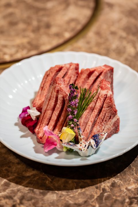 Another highlight is the Premium Thick-Cut Tongue, thick yet tender, with a distinctive aroma and rich umami that spread with each bite. The Special Seared Wagyu Sushi combines lightly torched wagyu with rice for an indulgent bite that melts in your mouth. As a refreshing finish, the Cold Noodles with sudachi citrus stand out, offering a clear beef-and-chicken broth paired with firm noodles. Guests can also enjoy the restaurant-exclusive Moringa Highball, a refreshing drink that pairs perfectly with wagyu. For takeout, the A5 Wagyu Lean Beef Bento allows you to savor the same premium flavor in the comfort of your hotel.
