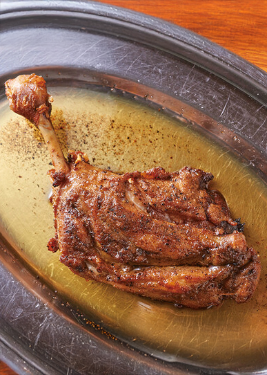 また〈骨付き鶏の香味焼き 生キャベツ付き〉¥1,078(税込)は、特性スパイス香る香ばしい皮とジューシーな肉質が魅力です。