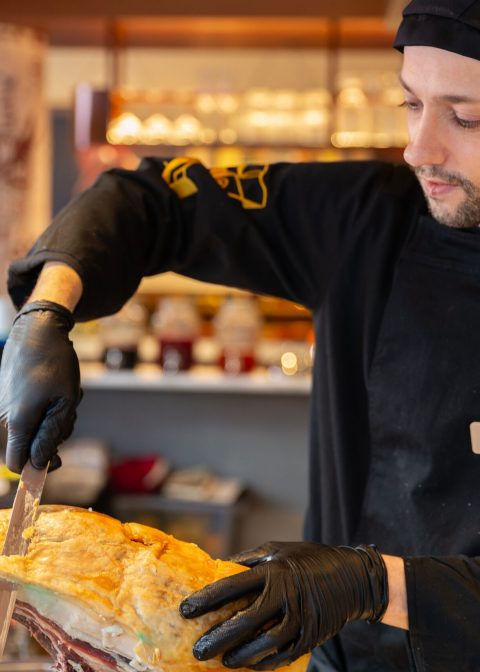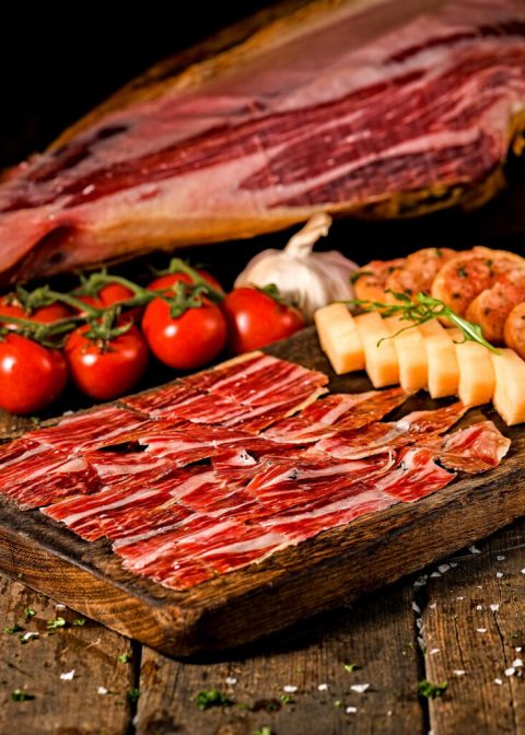 30ヶ月以上自然熟成させた〈イベリコ豚のハム〉は、塩味と旨みが凝縮。完熟メロンと合わせると、甘みと塩気が絶妙に溶け合い、ワインが進む逸品に。