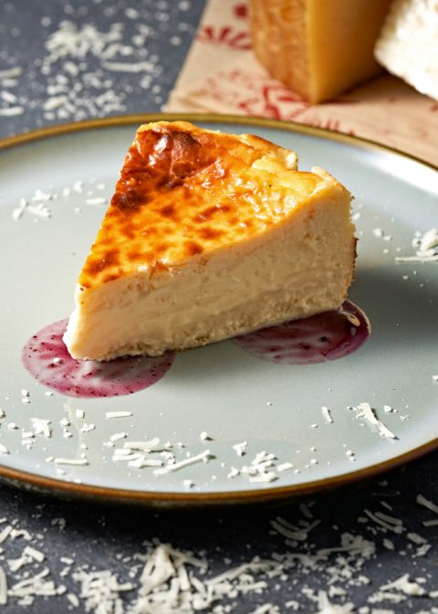 そしてデザートには、スペイン・バスク地方出身のシェフが手がける〈バスクチーズケーキ〉を。5種類のマンチェゴチーズを使った秘伝レシピで、濃厚なのに軽やかな口どけ。食後でも重さを感じず、チーズの奥深い味わいに魅了されます。