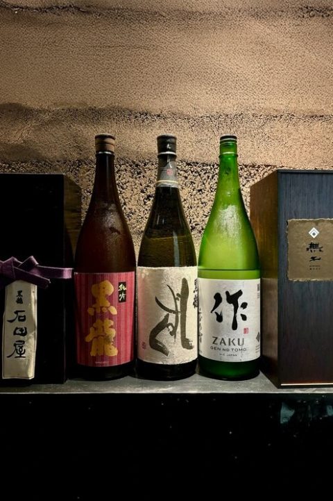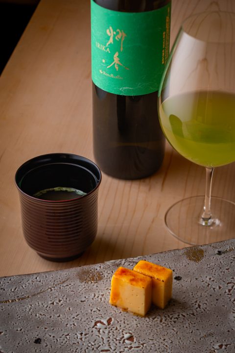 コースをより特別な体験へと導くのが、日本酒とのペアリング。「鮨四 -華-」では、季節に合わせて厳選された限定酒や希少酒、もちろんアルコール以外のドリンクまで、豊富に揃っています。