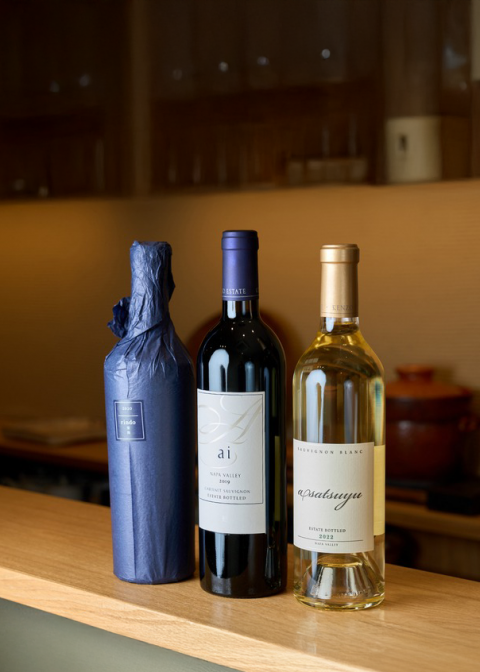 「四季料理 きたがいち」では、料理との調和を重視した厳選の日本酒とワインが揃う。全国各地から選ばれた日本酒や、食事に寄り添うプレミアムワインを静かな和の空間でゆったり味わえる。銘柄は仕入れによって変わるため、来店時におすすめをスタッフに尋ねる楽しみもある。酒器にもこだわり、一杯ごとに丁寧なおもてなしが感じられる。