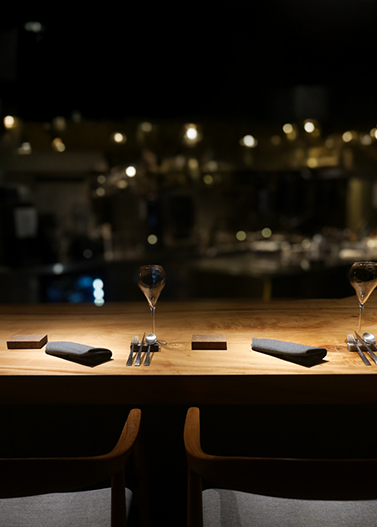 カウンター席では、シェフの丁寧な仕事を眺めながら料理が味わえる特等席も。