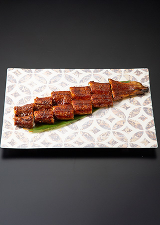 〈うなぎ長焼き〉¥5,150(税込)は、ふっくらと焼き上げた蒲焼きをそのまま一本で楽しめる逸品。さっぱりと味わうなら〈うざく〉もおすすめ。香ばしい鰻と爽やかな酢の物の組み合わせが心地よく、食事の合間の一皿としても人気のメニュー。