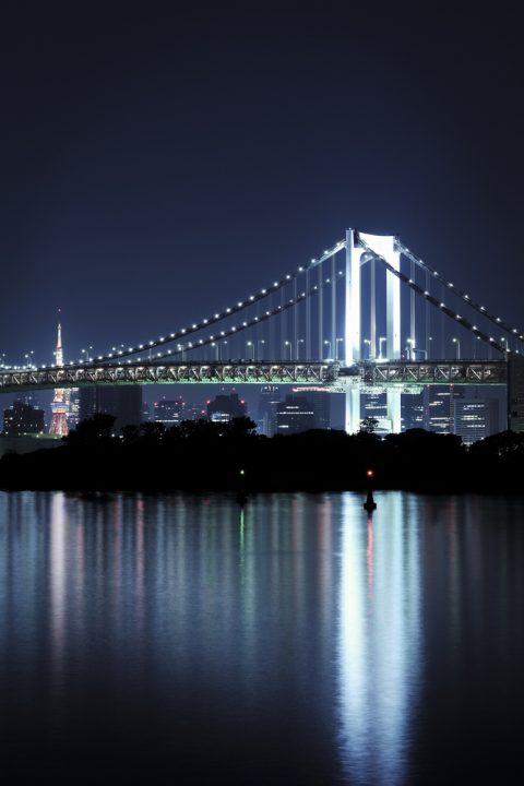 散策やBBQなども楽しめる「潮風公園」だが、旅行者にとって最も魅力的な要素のひとつが夜景だろう。東京湾越しに光り輝くレインボーブリッジ 、そしてその奥に見えるのは東京タワーだ。夜景が綺麗なのは当然夜だが、写真を撮るなら少し早め、空が薄暗い夕方から撮影をスタートするのがオススメ。オレンジから紫、深い青へと空の色が変化していく瞬間を撮影できる。レインボーブリッジが定番だが、海岸線沿いにつづく品川埠頭のコンテナ施設も見逃せない。鉄骨製の巨大なラクダのような機械がオレンジ色の光に浮かび上がる様子は圧巻だ。公園は北エリアと南エリアに分かれているが、レインボーブリッジを見たければ北エリアがオススメだ。