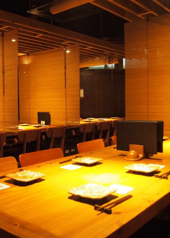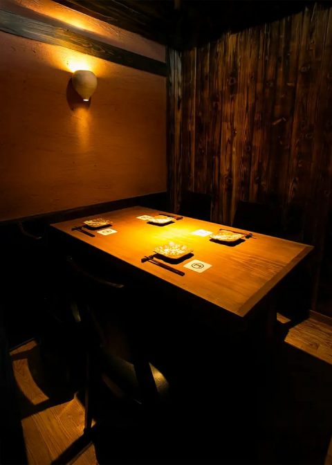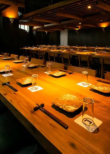店內以木紋調為主軸打造舒適和風現代空間。大窗灑落的陽光與格柵投射的斑駁光影增添靜謐感,桌席區可悠閒暢談。吧檯座位可近距離觀賞廚師現場烹調的精湛技藝,體驗充滿臨場感的用餐時光。另設有半包廂與獨立包廂,寬敞空間亦可提供整場包場服務,極適合宴會或團體聚會。