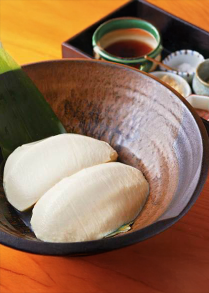安庵的特色菜是每日清晨製作的〈現制豆腐~配七種風味佐料~〉¥1,078(含稅)。使用伊豆大島天然滷水製成的豆腐,口感綿軟、豆香清雅。搭配多款佐料可呈現豐富的口味,是值得一嘗的匠心之作。