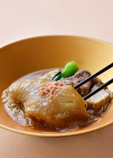 招牌佳品〈至尊魚翅面〉嚴選鼠鯊的尾鰭精製而成。柔嫩的魚翅包裹在醇香的羹湯中,與麵條共現入口即化的絕妙體驗。配以前菜甜品的套餐,更顯優雅時光