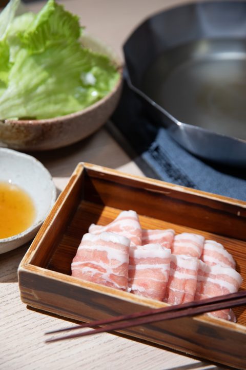 「味豚」肉質柔軟清爽,脂香淡雅,風味醇厚。搭配本店專為涮肉研發的原創「橙醋醬油」,清新酸味與醇厚鮮味巧妙融合,更添層次。佐以一杯日本酒,風味愈加豐富迷人。
