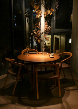 店內以柔和的燈光營造出舒適的氛圍,整體採用溫馨木質調內飾,空間寧靜而富有格調。餐桌間距寬敞,讓賓客能不受打擾地悠然享用美食。